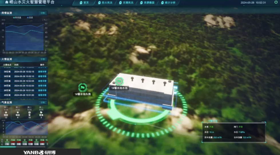 利用BIM技术结合崂山景区的卫星云图,创建了精确的三维模型,实现了项目机电设施的数字孪生,为防灾指挥调度提供了直观的决策辅助。